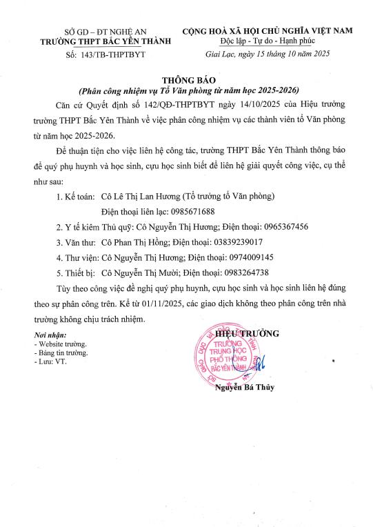 Xin thông báo để quý thầy cô giáo, học sinh, phụ huynh và nhân dân tiện liên lạc công việc.